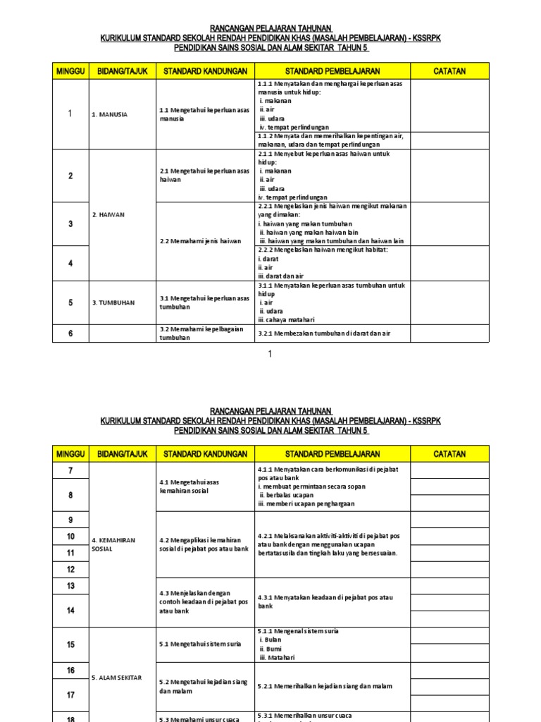 Dpk 2 0 Kssr Pendidikan Khas Tahun 5 Gurubesar My